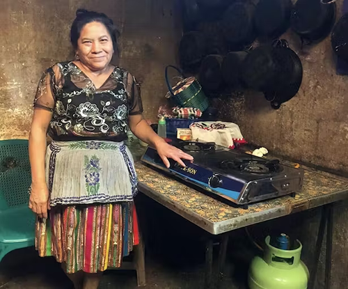 A Guatemalan cook with her improved LPG-burning cookstove.
